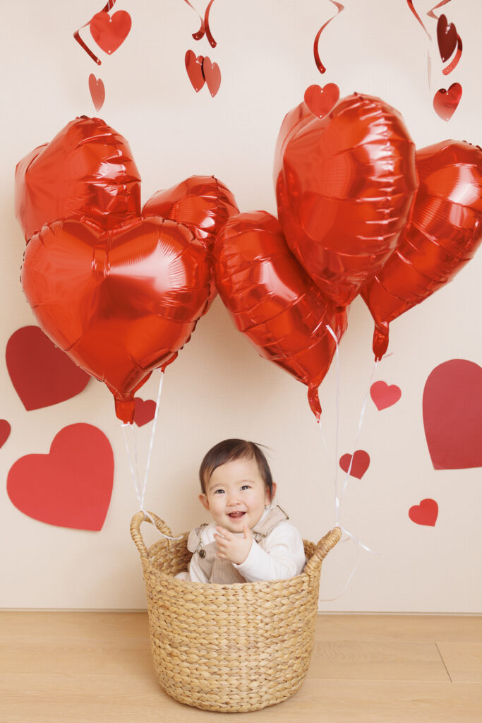 ハートの気球とハートいっぱいの傘、両方撮影できます